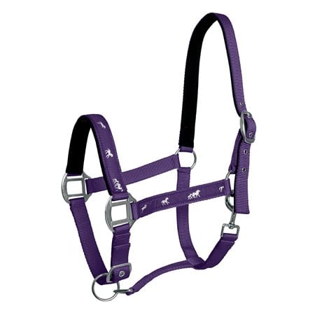 Nylonová, podložená ohlávka , zdobená výšivkou koníků od fi. Fair Play.