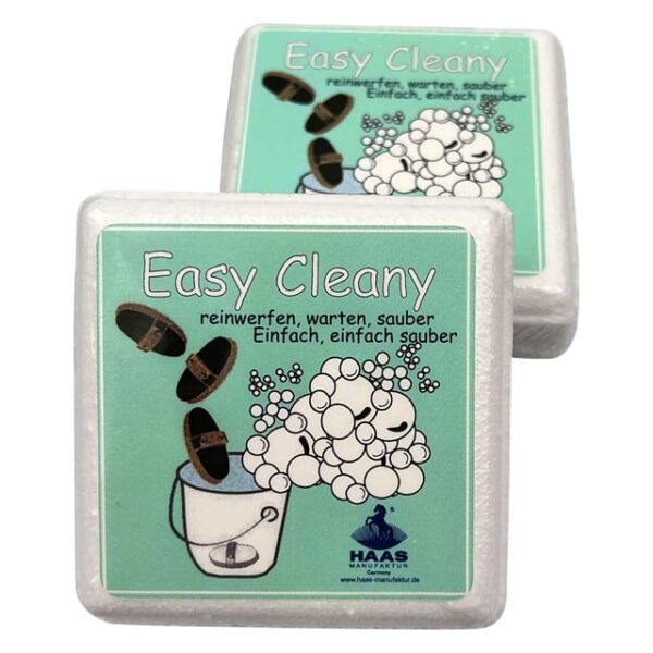 Nejjednodušší způsob čištění koňských cajků!Čisticí kostka Easy Clean Cube od HAAS vám pomůže bleskově vyčistit potřeby na koně. Tento inovativní produkt slibuje snadnou aplikaci a vynikající výsledky. Přesvědčte se o její účinnosti a zažijte, jak revolučně mění péči o vaše koňské věcičky. Použití:Jednoduše vhoďte kostku do kbelíku s vodou, přidejte věci a počkejte 15 minut. Po rychlém opláchnutí budou vaše štětce opět jako nové. Rozměry: cca 6,5 x 6,5 x 2,8 cm