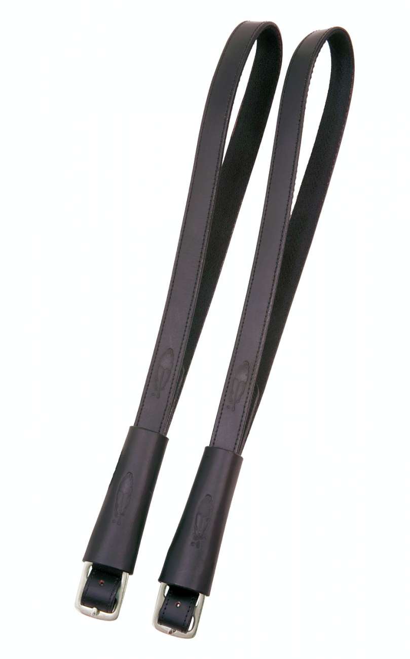Odolné třmenové řemeny z hladké kůže s nylonovou výztuží, která zabraňuje natahování. Přezky jsou umístěny na spodní straně nad třmenem, takže nepřekáží pod stehny, a řemeny se snadno nastavují přímo ze sedla.